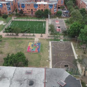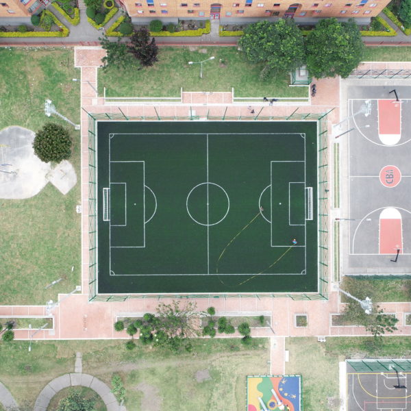 Actuación: Diseño y construcción de la cancha sintética de futbol 8 con grama sintética FIFA certificada de 60mm,equipamiento, cerramiento contra impacto e iluminación.