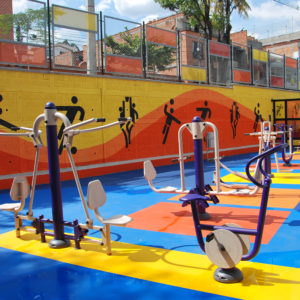 Actuación: Suministro e instalación de grama sintética para cancha futbol 5, suministro e instalación de resina sintética para cancha multideportiva adecuación y construcción de parque con más de 10 equipos de biosaludables.