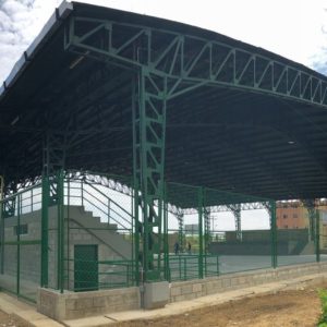 Client: Alcaldía de Barranquilla. August-02-2017 Type: Integration and Sports Center. Works Carried out : Construction of sports center with stands, metallic cover, multisport demarcation and metallic enclosure.